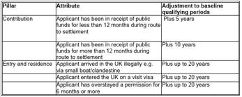 The gist of the change is to grant settlement on the basis of contribution to the UK rather than after a fixed period. Earned settlement is to be based on a “time adjustment” model built on four core pillars: character, integration, contribution and residence.